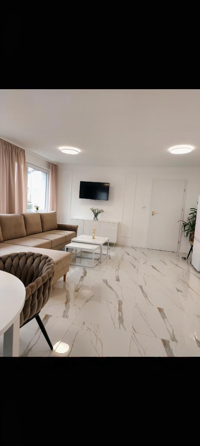 Bardzo przyjemny apartament, super urządzony i przytulny. Do plaży ok. 20min pieszo natomiast bardzo przyjemną drogą, więc to sama przyjemność. Przemiła Właścicielka. Bardzo zadbany obiekt.