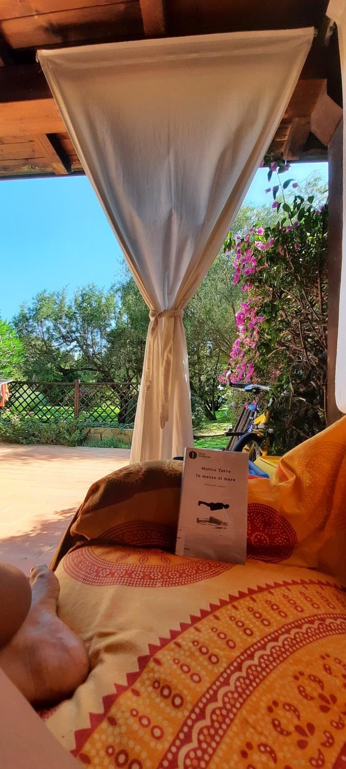 Posizione magnifica in mezzo al verde, piccola baia e spiaggia privata con accesso diretto dal giardino del residence. L'appartamento ha uno splendido spazio esterno coperto con tavolo e divani dove mangiare e passare il tempo in pace totale. Zanzare assenti o quasi. Parcheggio coperto disponibile all'interno della struttura e vicino agli appartamenti, comodissimo per trasportare spesa o attrezzature per il mare! Gentilissime la proprietaria Claudia e la signora Luciana.