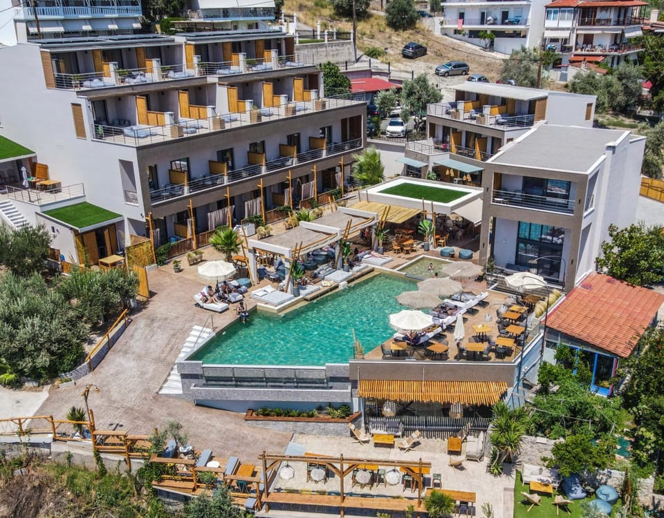 Facing the beachfront, Del Mare Suites offers 3-star accommodations in Glida and features a seasonal outdoor swimming pool, fitness center and terrace.