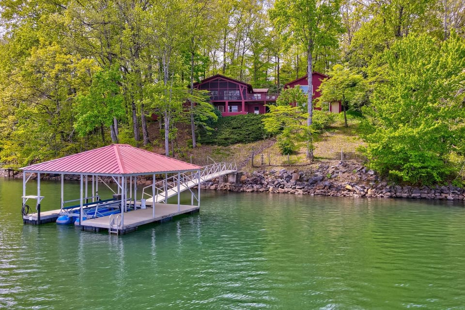 Discover the beauty of Chatuge Lake with a stay at Lakeside Chateau Lake Chatuge Rental Covered Dock Cedar Hot Tub, a top rated House with amenities such as Air conditioning, Balcony/Terrace and Dryer, and more.