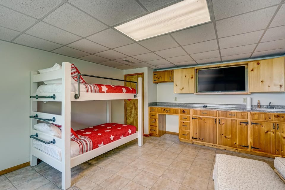 Business stays, family stays, couples stay, getaway vacation, and rental in Chatuge Lake at Stunning lakefront home with kayaks, dock, fireplace, game room, & washer/dryer for $601 for your next trip.