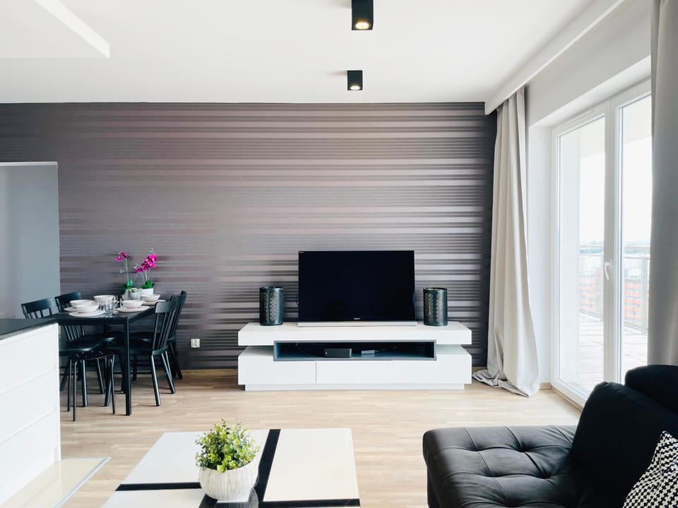 SAN APARTMENT 16th floor is located in Gdańsk, just 1.1 miles from Brzeźno Beach and 1.7 miles from Olivia Hall. This property offers access to a balcony, free private parking, and free Wifi.