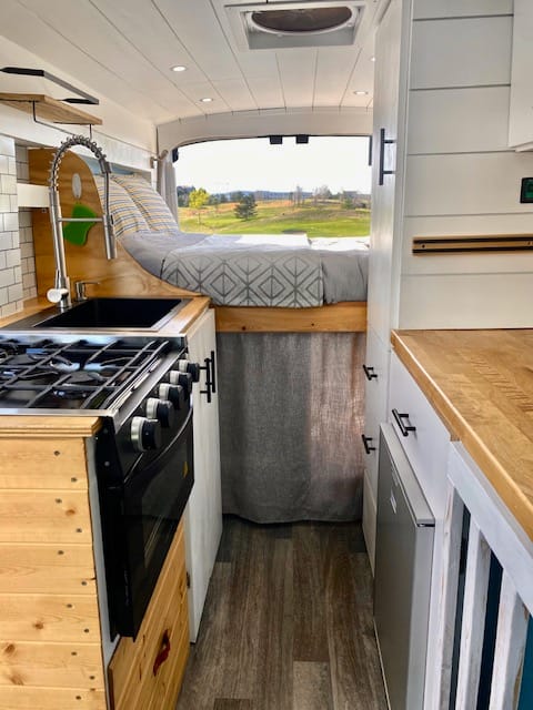 Privacy and comfort are essentials. To keep you cozy throughout the different weather conditions, we have equipped Sunnyside with the following: 3M thinsulate insulation, MaxxFan Air fan, tinted windows, blackout window shades and blackout curtain. Additionally, a full-size bed, two pillows, and fresh sheets are included.