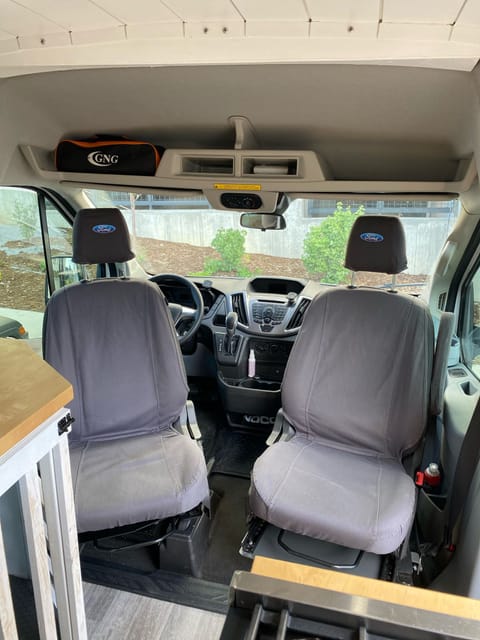 Our rig is a 2015 Ford Transit passenger style van. It is a 149" wheelbase with a mid roof that comfortably accommodates two adults under 5’8’’. Sunnyside is designed with functionality and luxury comfort in mind. The large windows allow for an abundance of natural light, the polished interior design and fine quality of features create a top-notch