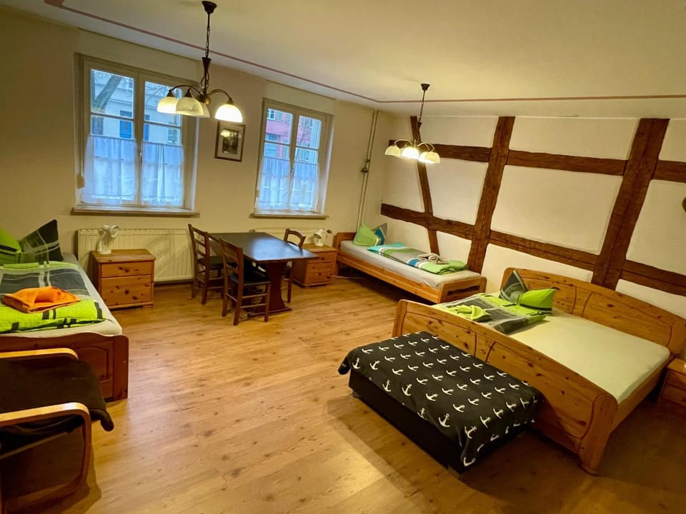 I just called the Ferienwohnung said we had arrived and they were there in 10mins, super nice explained everything, showed us around and then left. It was quick efficient but also very friendly. The apartment itself is very roomy with a small outside small one can sit and eat outside. Everything works and is clean. We all slept really well and felt very comfortable there.