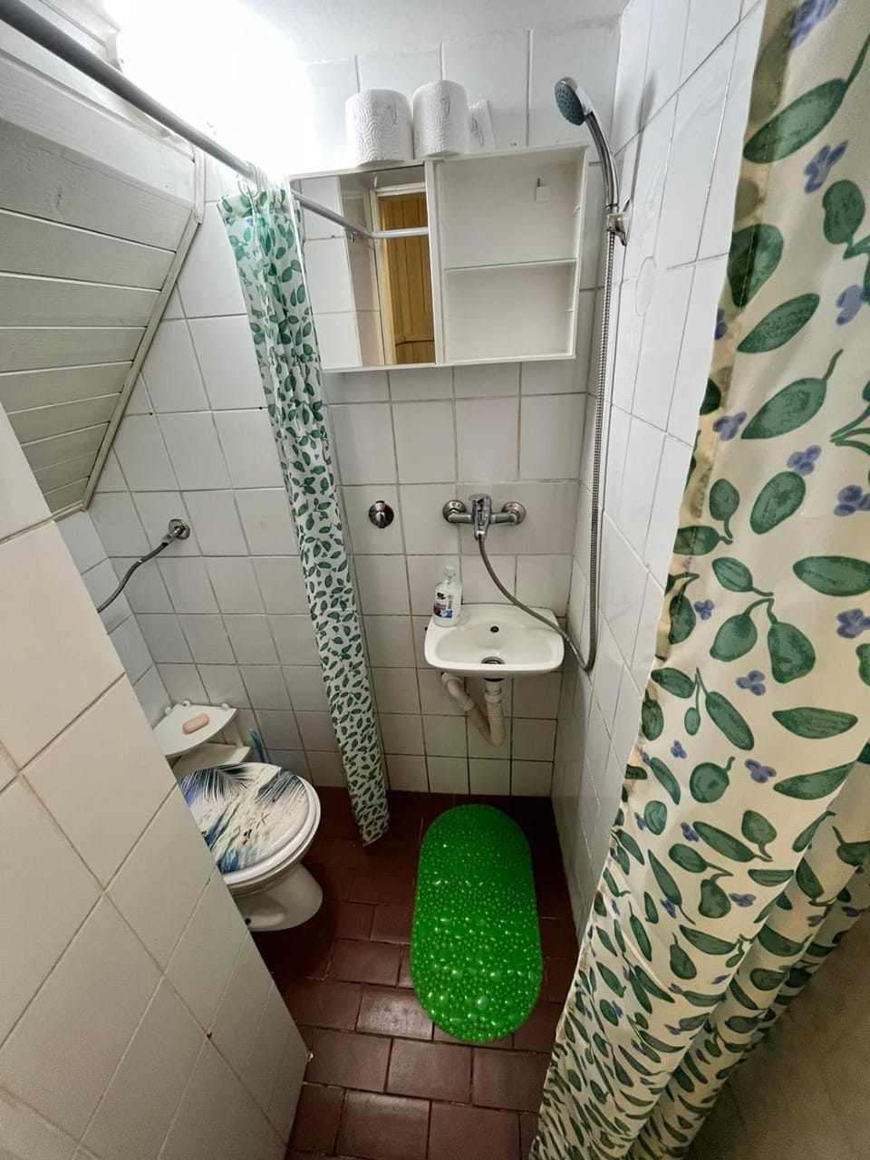 Bathroom was small and the shower was from the sink.