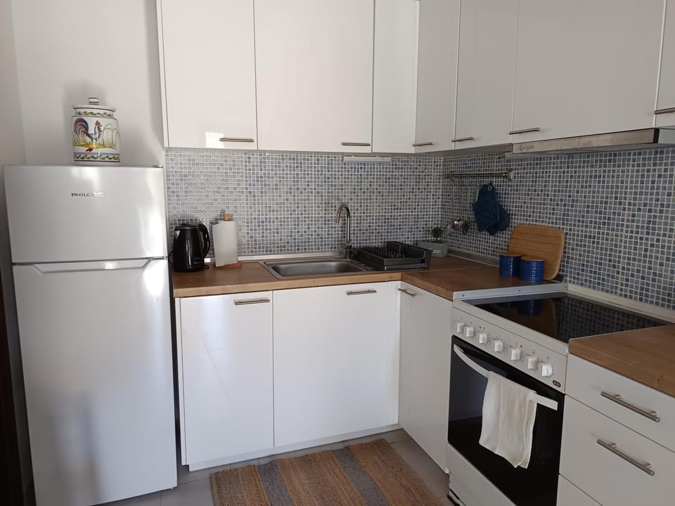 A charming little apartment with a large roof overlooking a wonderful view of the island. Maria is a generous and attentive host, with wonderful taste and attention to small details, and she made our stay very special. The apartment is small but tastefully equipped. The beds are comfortable, the kitchen has everything you need to cook meals, and on the roof there are sunbeds, a table, and chairs. Truly, there isn't a single detail one could think of that wasn't in this apartment. A very short distance from the restaurant and mini-market, in a quiet and peaceful area – what more could you ask for? We are very grateful and will certainly return.