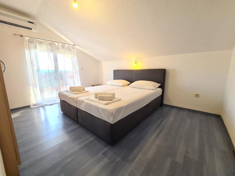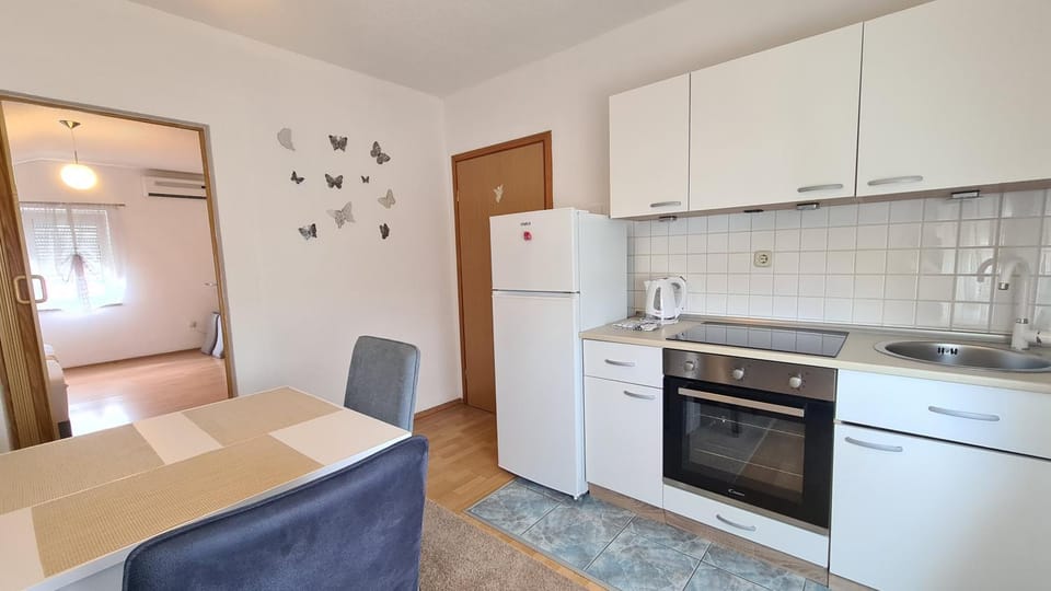 We stayed in Zadar for 5 days and everything was wonderful. Next to the accommodation there is a shop and a cafe (which serves crazy portions)), about which the owners told us in English mixed with Croatian) We are from Ukraine and understood many words for Croatia) The room has everything we need, once we needed an iron and it was given to us for use without any problems. A washing machine is also available. Location relative to the beach - we didn't walk, took a taxi... it takes 5-7 minutes. The owners are friendly and cheerful, I wish them prosperity and happiness!)