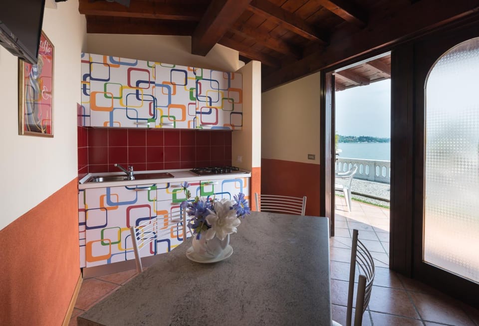 Położenie tuż nad jeziorem, obok przystań stateczków którymi można dostać się do innych miejsc nad Gardą. W domku klimatyzacja, wygodne łóżko, w kuchni lodówka, ekspres przelewowy, naczynia, garnki ,sztućce.