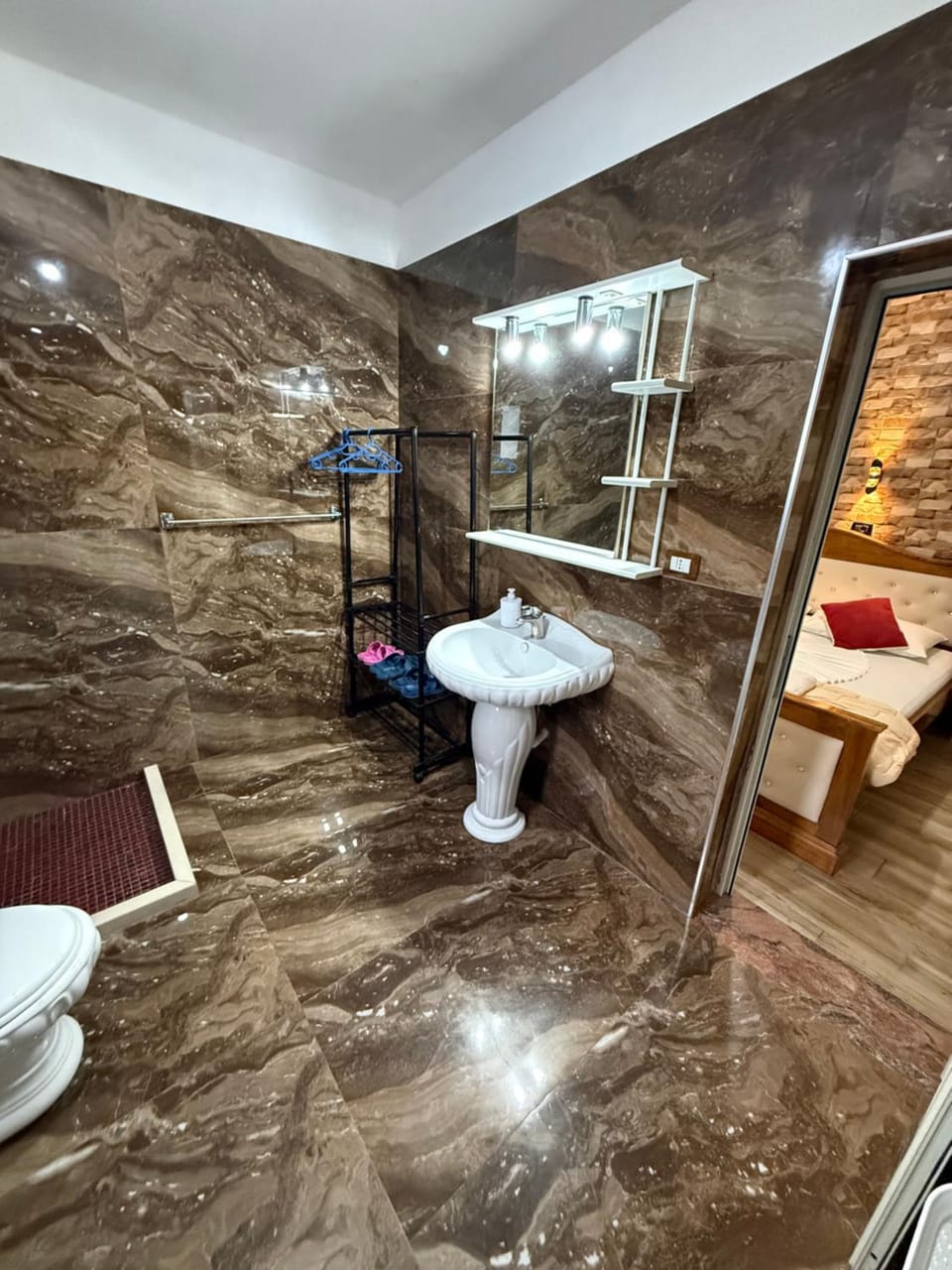 La douche sans rideau mais c’est courant en Albanie 😃