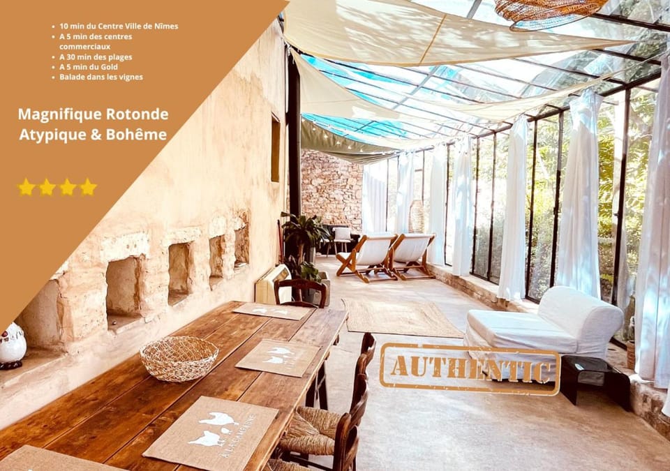 Très Belle rotonde déco Bohème, tennis, parking offers accommodations in Nîmes, 6.3 miles from Parc Expo Nîmes and 22 miles from Arles Amphitheatre. This property offers access to a terrace and free private parking.