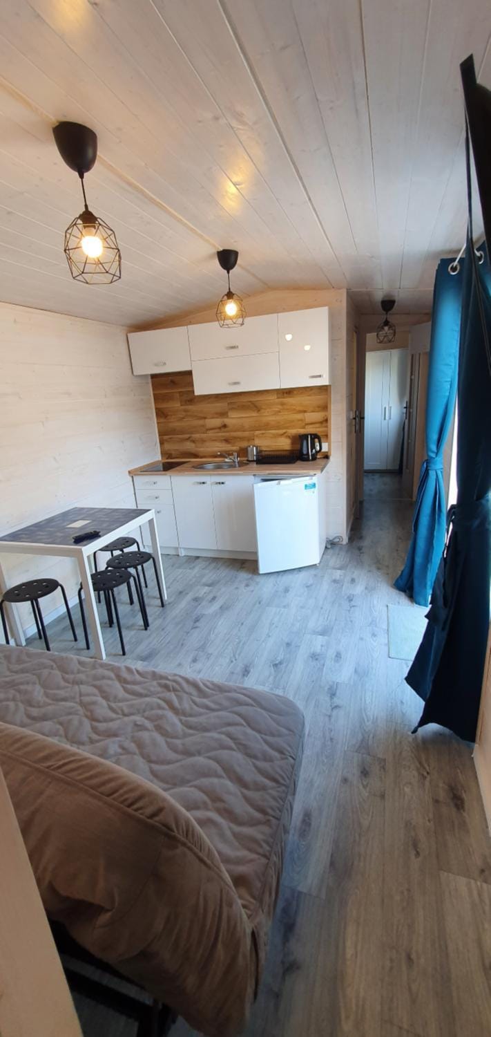 "These houses are small, but nice and clean. There is everything you need for comfortable holiday (IKEA style). It is aproximately 600 meters from the sandy beach, however it is located in quiet area. ..."