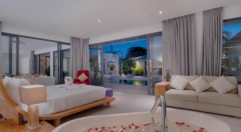 Canggu Villa by Sanga Sanga Hospitality provides flawless service and all the necessary facilities for visitors.Remain linked during your visit by utilizing the complimentary internet access available.Prior to your check-in date, you can arrange airport transportation services, guaranteeing a seamless and efficient experience for both arrival and departure. Services offered by taxi, car hire and shuttle at the resort villa ensure effortless exploration of Bali. The resort villa offers complimentary parking for guests who arrive with their own mode of transport. Effortlessly plan your daily activities and travel requirements with concierge service, express check-in or check-out, luggage storage and safety deposit boxes provided by the front desk services. Securing top-notch tickets and reserving prime dining spots become effortless through assistance from the resort villa's tours. For extended visits or whenever required, the laundromat, dry cleaning service and laundry service ensures your preferred travel garments remain clean and accessible. During leisurely days and evenings, in-room amenities such as room service and daily housekeeping enable you to maximize your stay in the room.The resort villa is completely smoke-free.In limited designated zones, smoking is exclusively permitted.Crafted for coziness, every guestroom provides an array of features, guaranteeing a tranquil night's sleep while maintaining the level of comfort.For a more enjoyable stay, select rooms at resort villa are equipped with linen service, blackout curtains and air conditioning. At Canggu Villa by Sanga Sanga Hospitality, guests can choose from a variety of room configurations, some of which feature separate living room and balcony or terrace. For certain chosen rooms, guests can enjoy in-room amusement like television and cable TV as a part of their stay.Rest assured that your hydration needs will be met, as some guestrooms are equipped with a refrigerator, bottled water, a coffee or tea maker, instant coffee, instant tea and mini bar. It is worth noting that certain guest bathrooms feature a hair dryer, toiletries and bathrobes for your convenience. Each morning at Canggu Villa by Sanga Sanga Hospitality, a scrumptious, homemade breakfast kick-starts the day.Experience a fantastic evening effortlessly! Relish an entertaining night without venturing beyond the confines of the bar. Do you possess exceptional culinary skills? Prepare your meals personally within the resort villa at its BBQ facilities. During your stay at resort villa, an array of engaging activities and amenities guarantees a delightful experience. During your stay, the resort villa provides direct access to a beach, ensuring you remain near the sea throughout your visit.Treat and spoil yourself by stopping at massage and hot tub for a memorable experience.Begin your holiday perfectly by taking a plunge into the swimming pool.