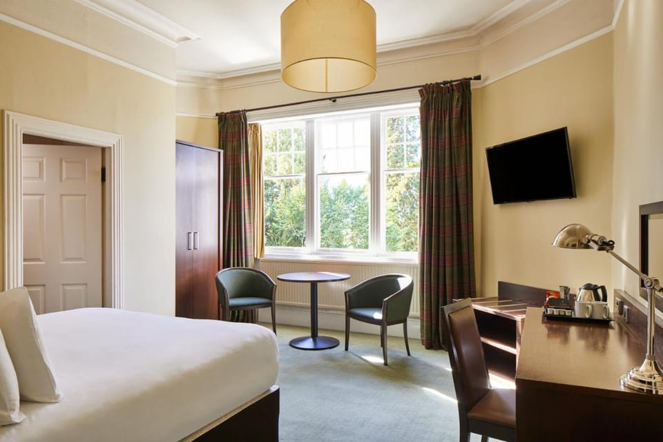 This fine country house hotel rests in 6 acres of beautiful landscaped gardens, only a few minutes' drive from Perth. There is free on-site car parking and free Wi-Fi. After exploring the castles and ruins of Perthshire, guests can enjoy a fine whiskey in the homely, Scottish bar or dine at the Huntingtower's spacious award-winning restaurant. There is also an outside seating area for warmer months. Each bedroom is unique; some offer a modern feel while others have bright colors and a more traditional decor. All rooms include tea and coffee making facilities and a bathroom with free toiletries. The Hermitage, which is a 30-minute drive away, has wonderful, easy walks through woodland, leading to ancient caves and a stunning waterfall. Activities like kayaking, 4x4 off road driving and golfing are also available. Perth rail and bus stations are 3 miles from the hotel. License Number(s): G