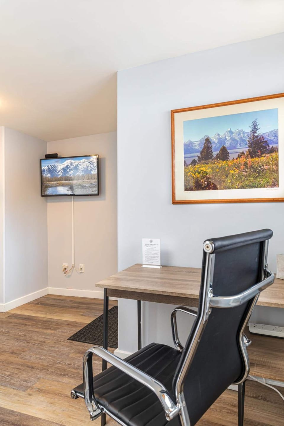 Beautiful room in the middle of Jackson Hole!! The bed and bedding were beautiful and very comfortable. I looooooved the remote control fireplace!! It worked well and was very warm and cozy. I appreciated the chairs and the little table by it. The desk was also a nice touch, as well as the keyless entry.
