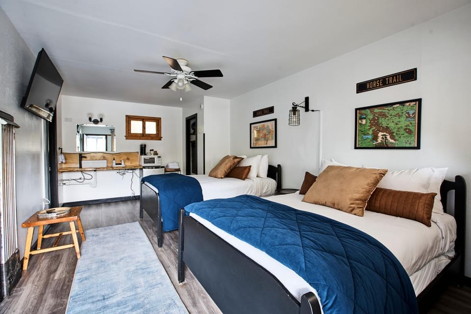 Excellent location, easy walk to downtown. Tastefully updated room. Firewood already in the fireplace on arrival! Easy parking. The construction work other reviewers mention has concluded, so traffic noise was minimal in February (I would expect considerably more traffic in summer, though). Friendly hosts. Comfy bed. Smart TV with all the apps. This property has done much better than most in town at reducing the lingering odor of in-room cigarette smoke from decades past.