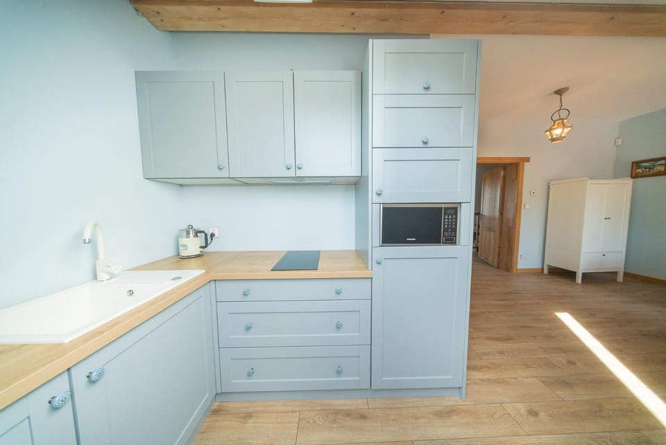 Bardzo czysto, wyposażenie bez śladów eksploatacji (jak nowe). Gustownie urządzone, wygodnie, duży taras. Położenie lekko na uboczu: spokój i cisza. Właściciele nie narzucający się ale dbający o potrzeby bieżące. Na powitanie jaja od kur własnego chowu ( pychota), woda mineralna, kawa i herbata. Borówki z plantacji właścicieli super! Brak odbiornika TV ale wifi umożliwia streaming - trzeba tylko wziąć laptopa lub tablet.