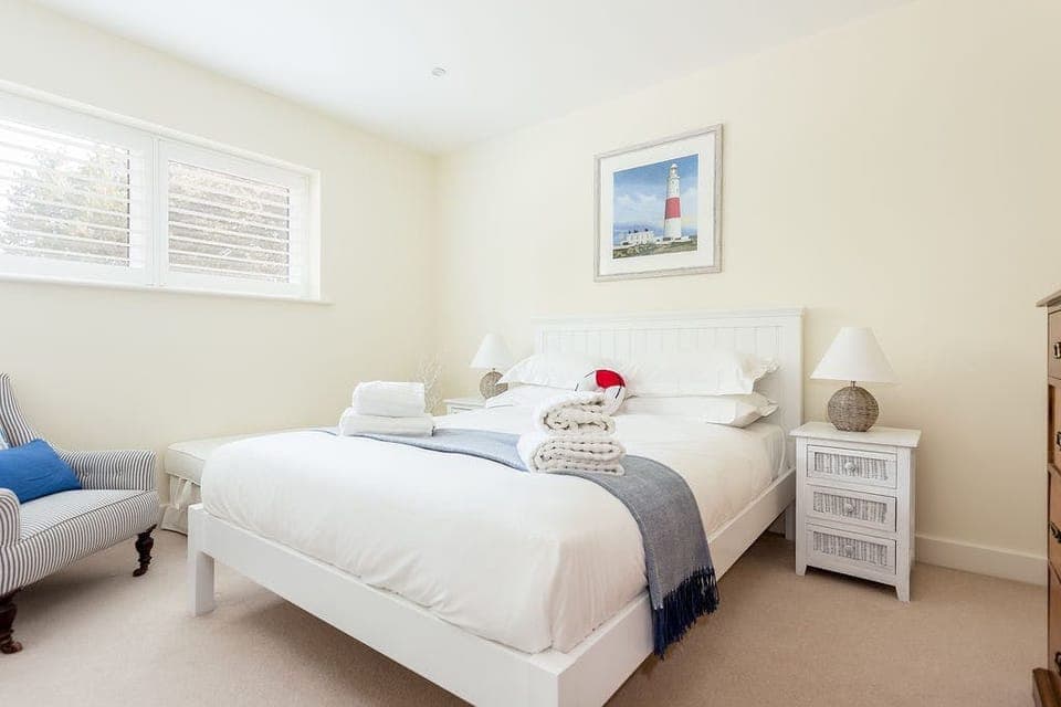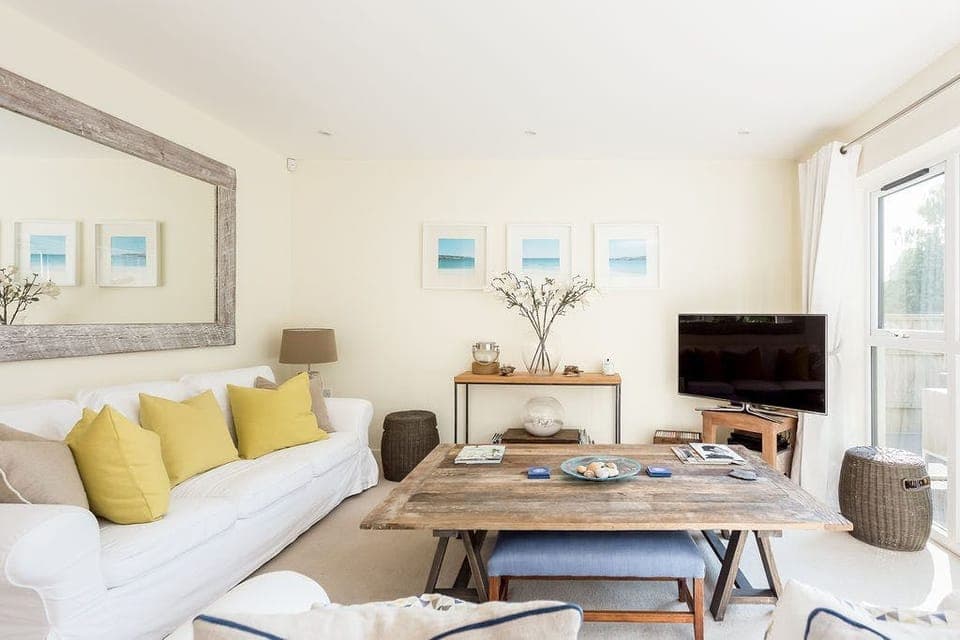 A perk of the home comes in the shape of the terrace in the back garden, which has an alfresco table and plenty of seating for making the most of sunny spells. If the weather's on your side, there are plenty of beaches to visit nearby, including Canford Cliffs. The centre of the pretty harbour town of Poole only takes seven minutes to reach in the car, too.