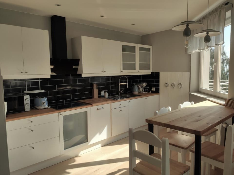 Bardzo ładne, przestronne, czyściutkie, nowocześnie urządzone funkcjonalne mieszkanie w nowym budynku. IV piętro. Fantastyczny widok z okien na port i SeaTowers. Lokalizacja: Gdynia-Grabówek. Około 1,2 km (wg Google) od stacji Gdynia Główna (SKM), 2,3 km od Skweru Kościuszki, mariny, plaży miejskiej. Apartament raczej dla lubiących dłuższe spacery i wycieczki (ja bardzo lubię:) Świetna baza wypadowa do zwiedzania Trójmiasta. Salon: duży, balkon, sofa, stół, dobre Wi-Fi i TV. Sypialnia: duże wygodne podwójne łóżko, porządna pościel, duża szafa, TV. Aneks kuchenny: kompletnie wyposażony (np. lodówka, indukcja, zmywarka, ekspres, czajnik, mikrofalówka, sztućce, szkło, garnki, patelnia). W kuchennych szafkach i szufladach - wszystko co potrzebne. Łazienka: ładna, nowoczesna, funkcjonalna (ręczniki, suszarka do włosów). W całym apartamencie dużo punktów świetlnych tworzących fajny klimat. Do tego apartamentu można przyjechać z przysłowiową "szczoteczką do zębów". Wszystko inne - jest na miejscu (np. żelazko, deska do prasowania). Widać wielką dbałość Pani Gospodyni o szczegóły: piękne marynistyczne dekoracje (bulaje w drzwiach, modele statków, książki, mapy, itp.). Świetnie korespondują one z widokiem z okien - naprawdę czuć, że jest się nad morzem. Parking: podziemny, bezpłatny (przypisane miejsce parkingowe), dojazd windą praktycznie pod drzwi apartamentu. Bezproblemowe zameldowanie/wymeldowanie. Dla osób pamiętających grudzień 1970: blisko historyczny przystanek SKM Gdynia-Stocznia, pomnik Ofiarom Grudnia oraz wystawa na kładce nad torami... Dziękuję za gościnę i gorąco polecam.
