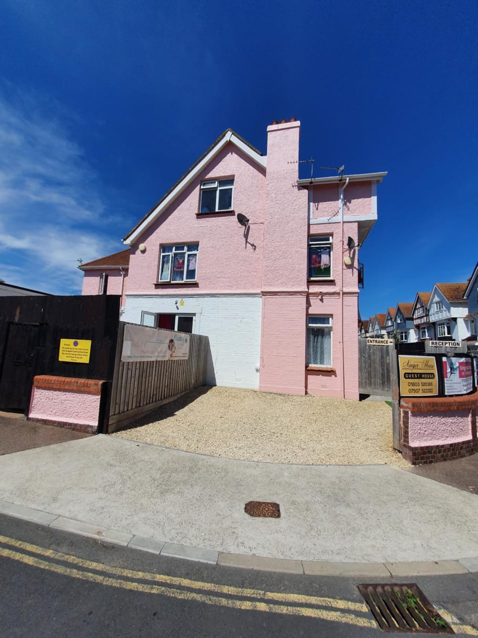SINGER HOUSE GUEST HOUSE ,FREE PARKING ,1 BEDROOM GROUND FLOOR HOLIDAY FLAT , Private Gate & Garden & Bathroom , microwave , Fridge , Opposite Paignton Pier & Beach , Hotel Reception To Happily Help & Greet you , 1 DOUBLE BED & 1 SINGLE BED