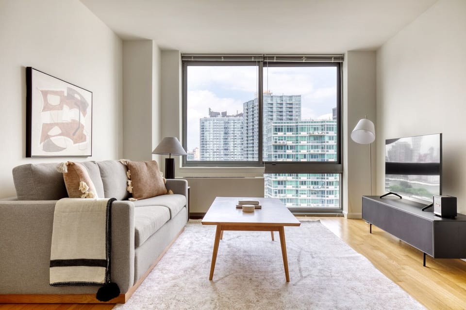 This furnished apartment is located in Long Island City, a neighborhood with amazing East River views. Nowadays, the area has become one of the best downtown Manhattan alternatives. Here, locals can enjoy a mix of activities from shopping on Jackson Avenue to indoor arts entertainment at MoMA PS1. Long Island City is also filled with modern public green spaces ideal for a stroll or jog. Grand Central Station is only a 20-minute subway ride away.