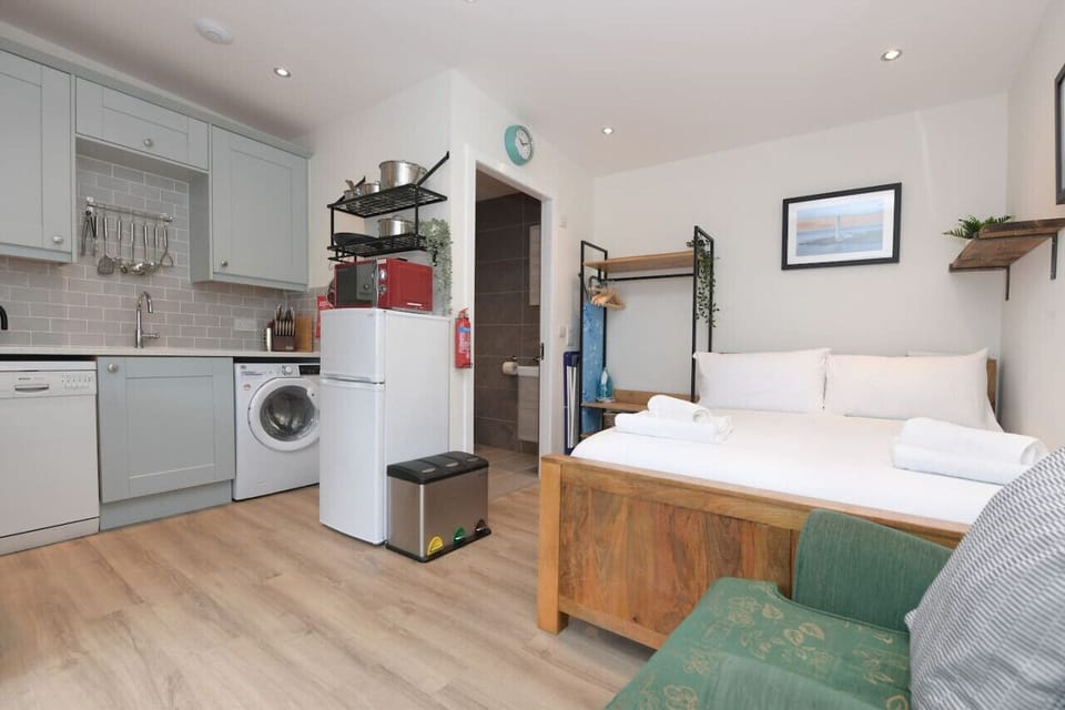 The studio has the same high finish with a comfortable double bed, seating area, fully equipped kitchen and shower room.