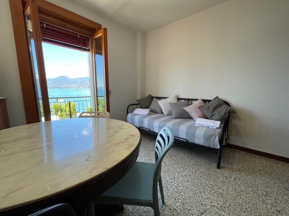 Spectacular views, Torri Del Benaco is a beautiful and the town is at your doorstep. The small balcony overlooking the restaurants and lake made our whole stay worthwhile. Lots of storage space despite a small apartment. Parking was an additional fee and off site, which we did not use but highly recommend accessing this area by car only as the bus is not reliable. The stone beach is walking distance, so it feels like a vacation apartment. It had a full size fridge in the kitchen. A/C unit in the hallway works for sleeping if you leave the folding door open.