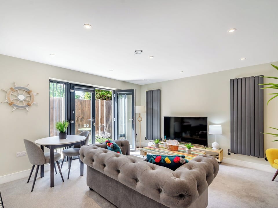 Stepping inside you are welcomed into a beautifully presented open plan living area bathed in light with large windows as well as glass doors opening out into your private enclosed patio, where you can sit out and soak up the sun, perhaps enjoy al fresco dining with a glass of something special. The living area has comfortable seating around the large Smart TV, with a modern kitchen with integrated appliances. The dining area is complete with a dining table, perfect for enjoying romantic meals for two and the bedroom has a double bed with fitted wardrobes. Each room is carefully furnished to ensure you have a comfortable and welcoming stay. The apartment is finished with a shower room where you can start or end each day in this refreshing shower. A highchair and travel cot are also provided, you just need to bring your own cot linen.