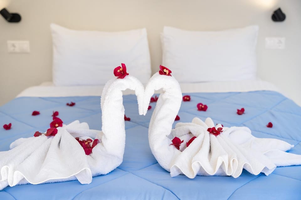 Great value for money. Modern no frills room with comfy bed, good air con heating (February) and nice little kitchen. Good bathroom facilities. Short walk to the beach and good tavernas. Good bakery open 7 days from 6am nearby.