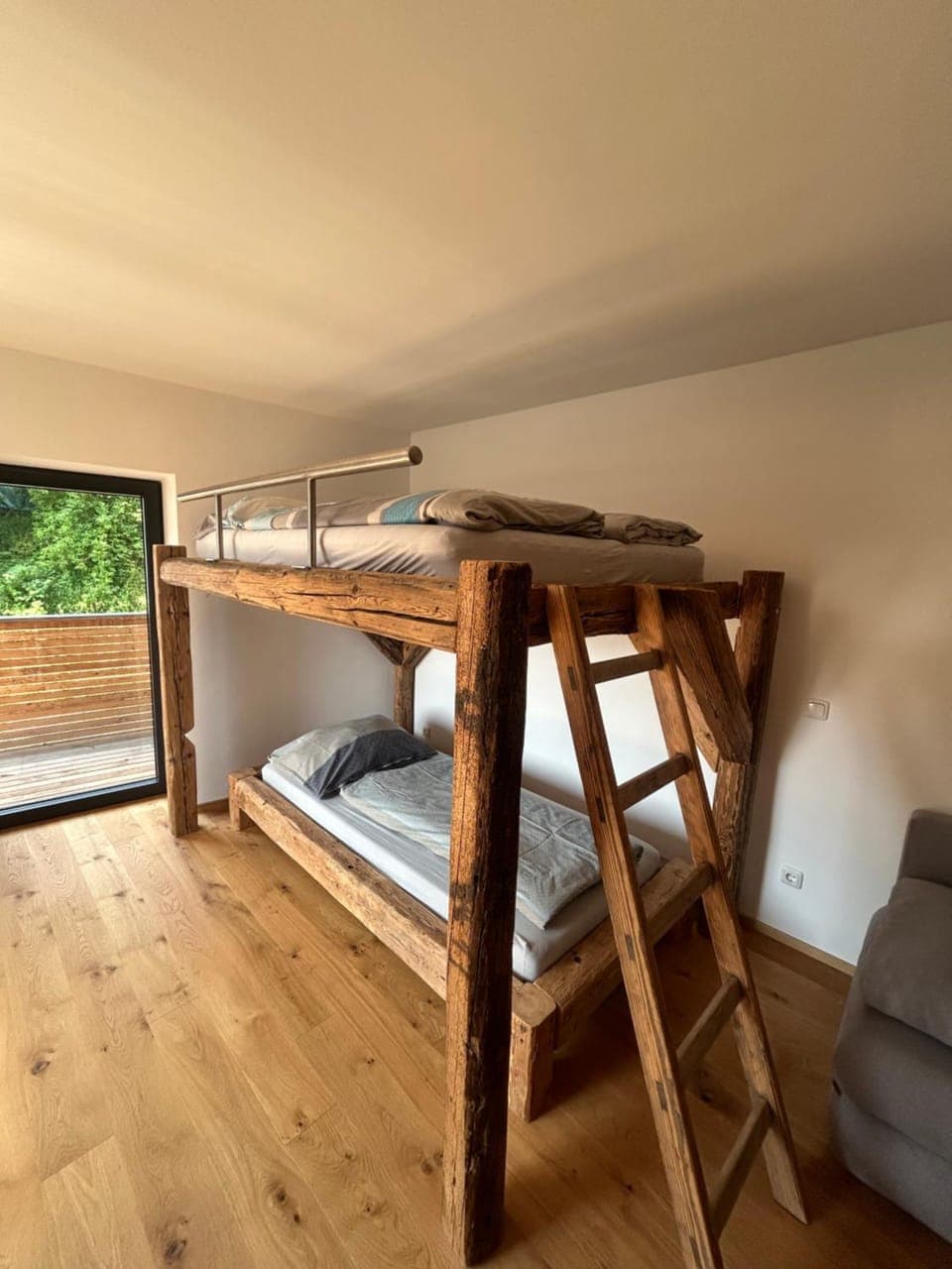 Be careful with bunk bed: my 10-year old ended up in ER accidentally rolling off in the middle of the night hurting herself. Recommend sleeping on the couch with youngsters.