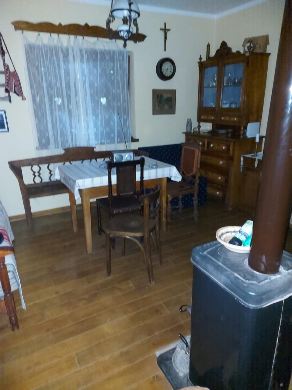 Huge table and oven outside. The house is cozy and homely furnished. Clean bathroom, rooms.