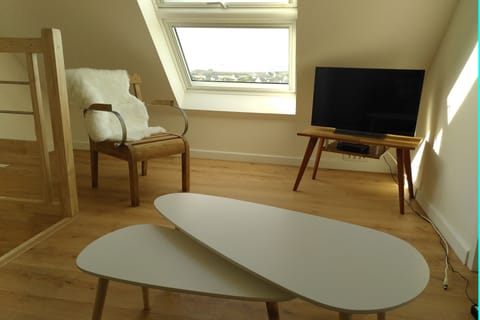 A cozy lounge awaits you on the mezzanine: a small TV corner, play area, or relaxation area overlooking the sea. The sofa bed can accommodate two additional people.