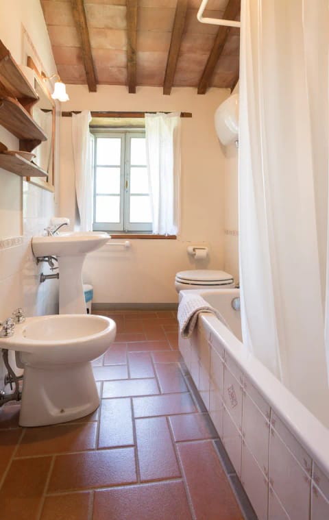 Follow a path through the trees and you’ll reach the quaint village of Palazzone. Here you’ll find a little supermarket, some laid back family run restaurants, and a winery. Pick up a bottle of Tuscan red to enjoy at sunset in your garden, as you watch the rolling hills around you turn golden. You are well placed to explore some of Tuscany’s finest delights – the hot springs at San Casciano dei Bagni can be reached in fifteen minutes by car, while the castle of Fighine, with its dramatic views and preserved Mediaeval village is just two kilometres away. Your host has extensive knowledge of the area and is always on hand to provide the best tips and recommendations.
