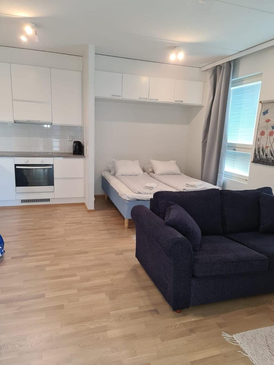 Kiva paikka hyvällä sijainnilla. Iso plussa saunasta ja isosta parvekkeesta.