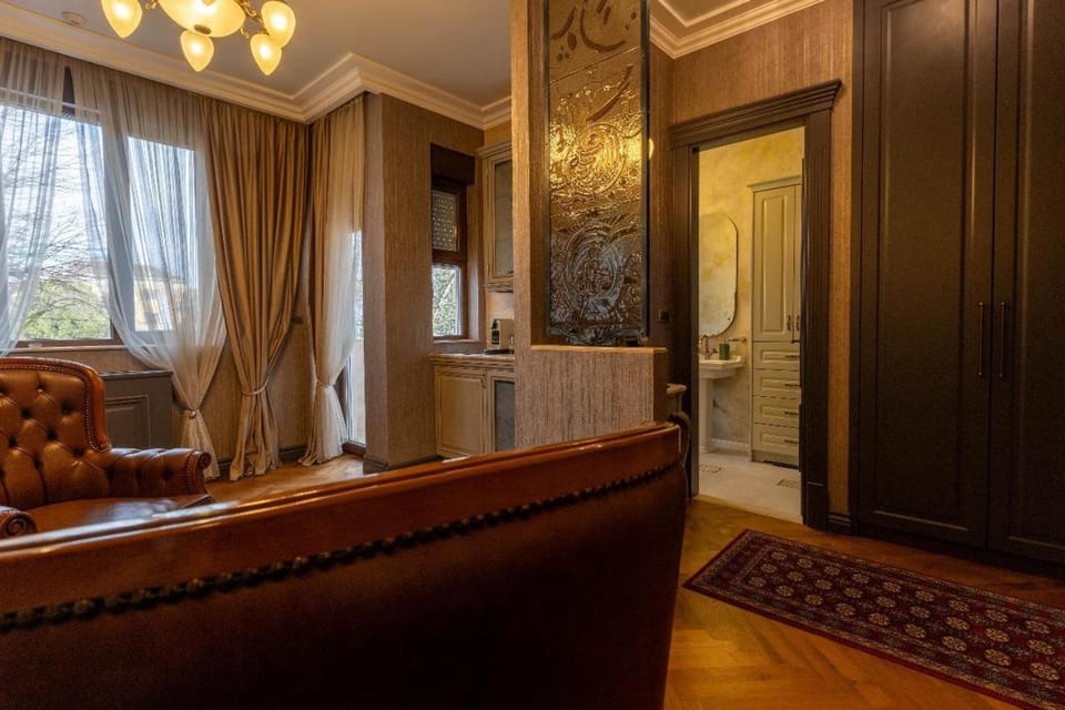 The apartment is very beautifully decorated and modern. The fixtures, lighting, doors and windows are all very good quality and the tiled floor surfaces in the kitchenette and bathroom are even heated. The bed is extremely comfortable with high quality and is a true king size. The kitchen is more like a wet-bar but refreshments and coffee were provided by the hosts. Not the type of kitchen you would be cooking full meals in. There is a stove, mini fridge, sink and plenty of glassware for snacks and drinks. The bathroom is well equipped with plenty of storage space and the shower is very nice and comfortable with good supply of hot water. The location of the apartment is on a beautiful street and the balcony has a great view. It is only 1 block from independance square and many good restaurants, cafe's and bars are very close. I highly recommend this apartment and would definitely book it again.