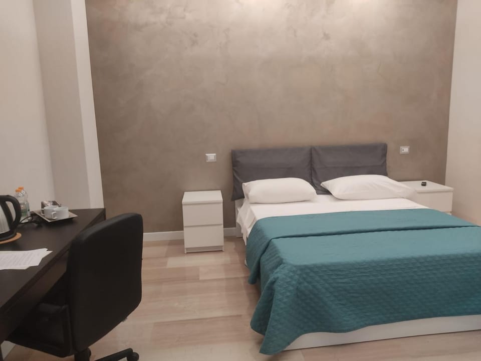 Posto centrale, ambiente pulitissimo, bagno accogliente e ben fornito, sanitari moderni e comodi da usare. Check-in molto comodo e senza stress, il personale disponibile e gentile. Abbiamo alloggiato nella camera 4, matrimoniale con bollitore e frigo, elettrodomestici che sono stati essenziali durante il nostro soggiorno. È stato bello stare qui per due notti tra due viaggi in treno da 15 ore l'uno, abbiamo riposato bene ed essere vicini alla stazione centrale è stato essenziale dato che avevamo con noi valigie pesanti. Ci trovavamo a Foggia per questioni mediche, il policlinico Riuniti si trova a 2km dalla struttura quindi è stato ottimo anche per questo, ed è stato piacevole poter riposare dopo un lungo viaggio e ore di visite mediche. Raccomando assolutamente se si cerca una sistemazione veloce a basso prezzo raggiungibile a piedi, e se la pulizia è una priorità per il vostro soggiorno.