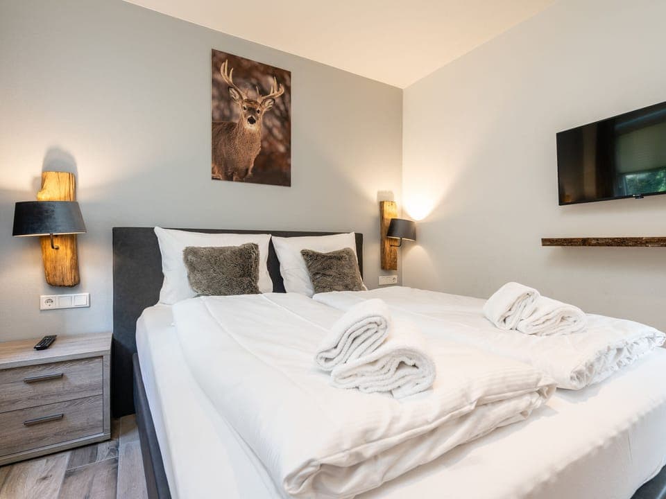 Although there are a couple of rustic nods to be spotted inside — including the cowskin rug and the preference for wooden surfaces — the finishes and furnishings wouldn't look out of place in a city apartment, especially the minimalist kitchen and glossy bathrooms. An added bonus comes in the shape of the outdoor terrace with an alfresco table from which you can get your fill of fresh mountain air.