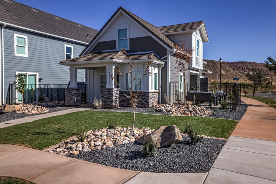 This newly built cottage is perfectly located in the up-and-coming Alaia (Stucki Farms) community in Washington Fields. This one-of-a-kind getaway is fully appointed and in a community with world-class amenities. it has 3 bedrooms and 2½ bathrooms. Highlights include an open-concept kitchen, solid surface countertops, tile flooring, 3-tone paint, custom trim, upgraded lighting, custom night lights in high-traffic areas, stainless appliances, custom tile accents, master bedroom on the main floor, bunk room with barn door, and more.