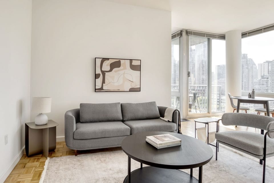 As with any Blueground apartment, you’ll find a thoughtfully designed space complete with beautiful furniture and a fully equipped kitchen in this two bedroom property. And, thanks to our superior quality mattresses, fully stocked linens, and towels, you can relax knowing you’ll always feel comfortably at home. When you’re ready for some fun, you can take in the New York vibes or bring the entertainment to you with the premium wireless speaker or smart TV.