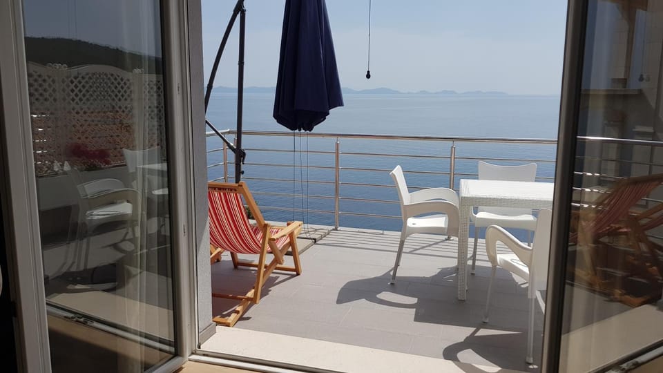 Predivan pogled i preslatka terasa sa udobnim ležaljkama. Kuhinja dobro opremljena, dovoljno ručnika, plahti itd., klima radi odlično, veliki TV i komarnici za insekte na svim prozorima i balkonima (2).