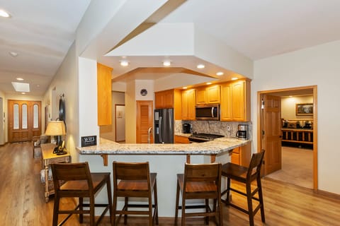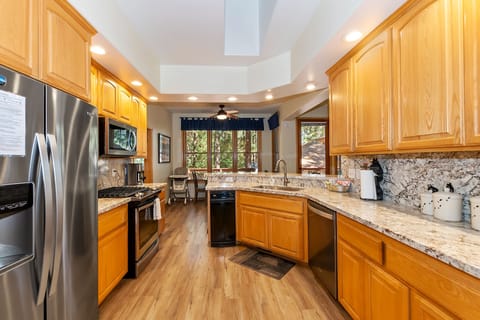 ✓ Kitchen: Fully equipped with stainless steel appliances, granite countertops, a coffee pot, and ample prep space. Enjoy meals at the kitchen bar or one of two dining tables. A high chair is provided for young guests.