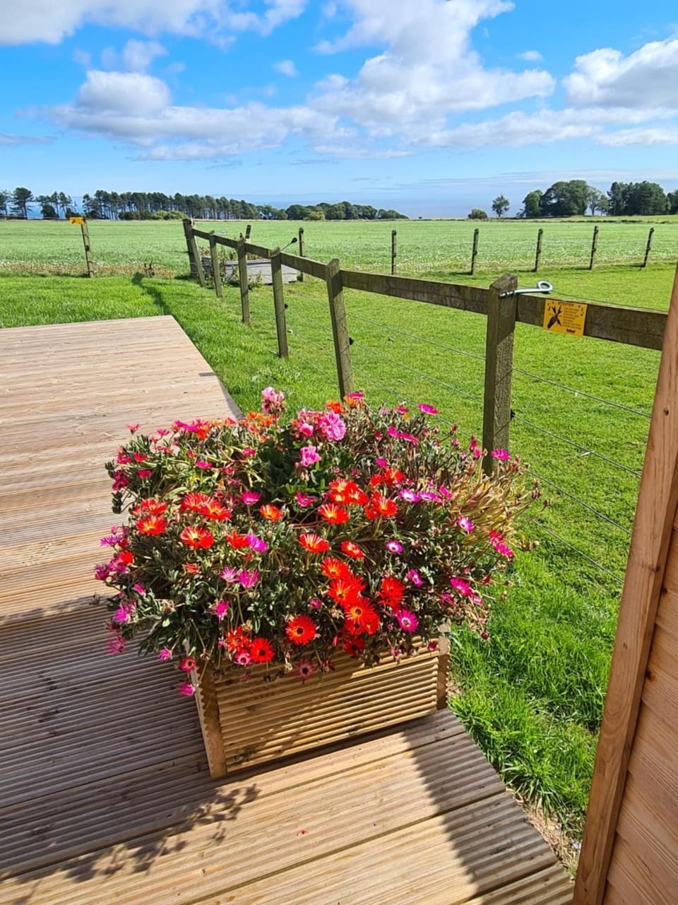 The location is very handy for the lovely town of Stonehaven. It is quiet with the only noise coming from the horses, which was lovely. You can see the sea from the caravan. The tv worked very well as did the wifi. We got complimentary eggs which were delicious.