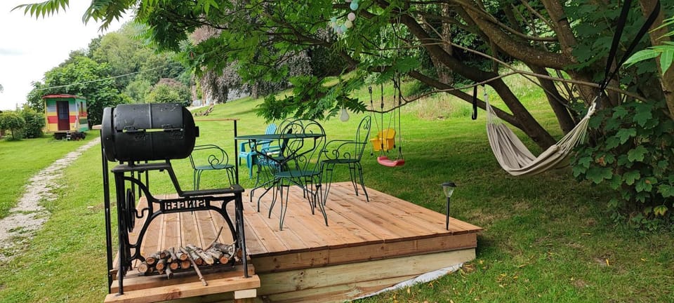 Un chalet vraiment mignon dans un grand jardin, la déco et les équipements sont parfaits. . L'aménagement est parfait !!! Il y a tout le nécessaire pour passer un bon séjour. Vraiment mignon.