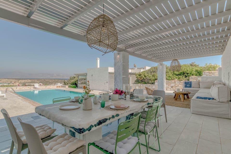 Indulge in a peaceful retreat at Angels Sea pool view Villa Pearl VIP Exclusive 8BD, our elegant Villa in Paros, Greece. Enjoy amenities including Family friendly, and more.