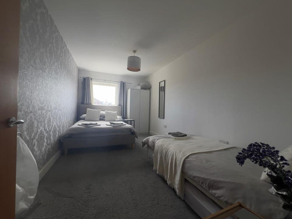 Property was in a good location with plenty of eateries around. Apartment was bigger that we expected and It was clean and tidy with games etc in drawers and you can sign into Netflix on the tv. Comfortable bed although a little short for my husband. We were able to contact the host easily enough and we were able to have an extra car parking space for our sons car. We saw David Seaman