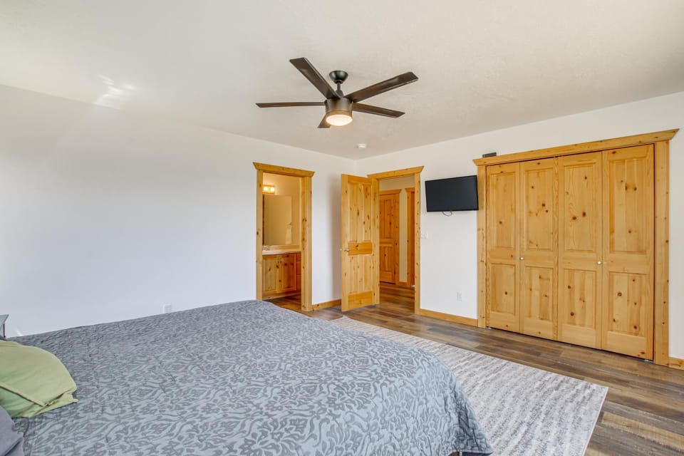 Indulge in a peaceful retreat at Stunning new cabin with 2 hot tubs, lake views, firepit, basketball, pickleball, our elegant Cabin in Garden City. Enjoy amenities including Air conditioning, Balcony/Terrace and Dryer, and more.