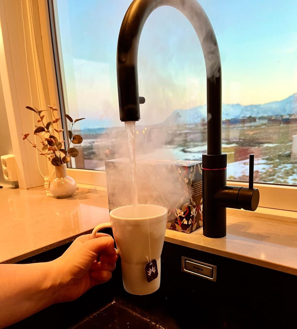 What amenities are available at House by the ocean with midnight sun view?