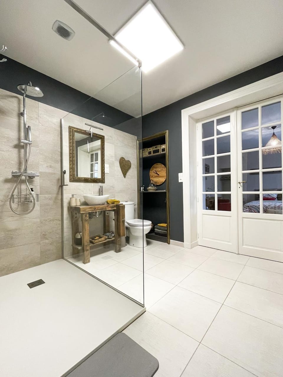 Très belle chambre. Bien décoré avec goût. Équipé avec cafetière et bouilloire pour une petite boisson chaude. Grande salle d'eau. Avec une petite terrasse sympathique pour les beaux jours.