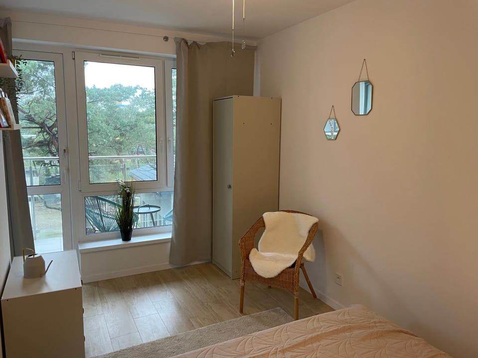 Pełne wyposażenie apartamentu. Winda, podziemny, chłodny garaż. Mimo gęstego zabudowania przyjemny widok na zieleń. Pralka, zmywarka. Wygodne, duże łóżko w salonie, można się dobrze wyspać, co ważne nie trzeba się przyzwyczajać. Ciepło w zimne noce.