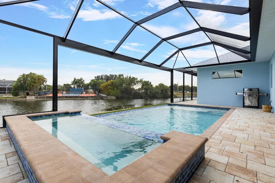 Enjoy the best of Cape Coral in our House, Waterfront home with private pool, dock, patio, balconies, & bikes. A stunning property with amenities including Air conditioning, Balcony/Terrace and Dryer, and more.